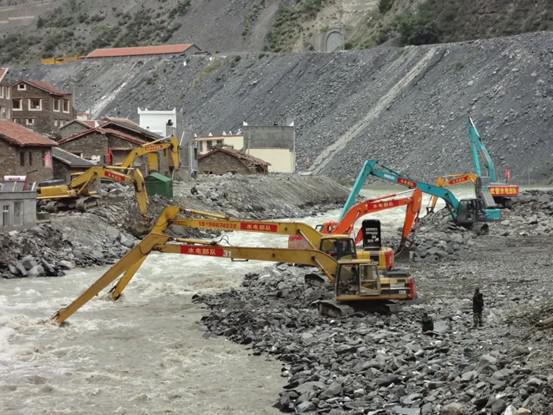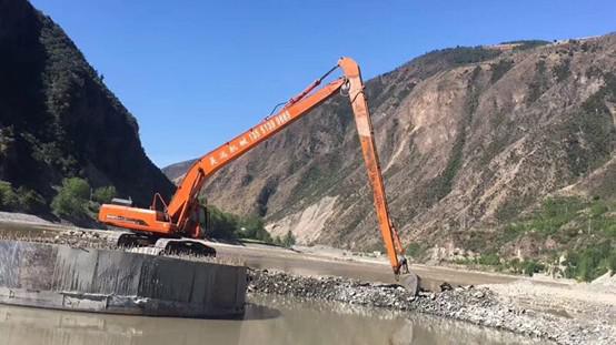加長(zhǎng)臂挖機(jī)河道堤壩的修筑和清淤